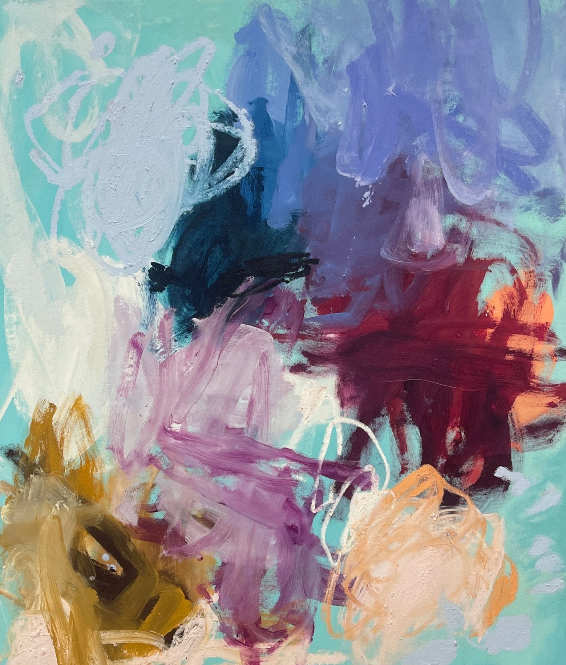 oil and oil stick on canvas, oak frame