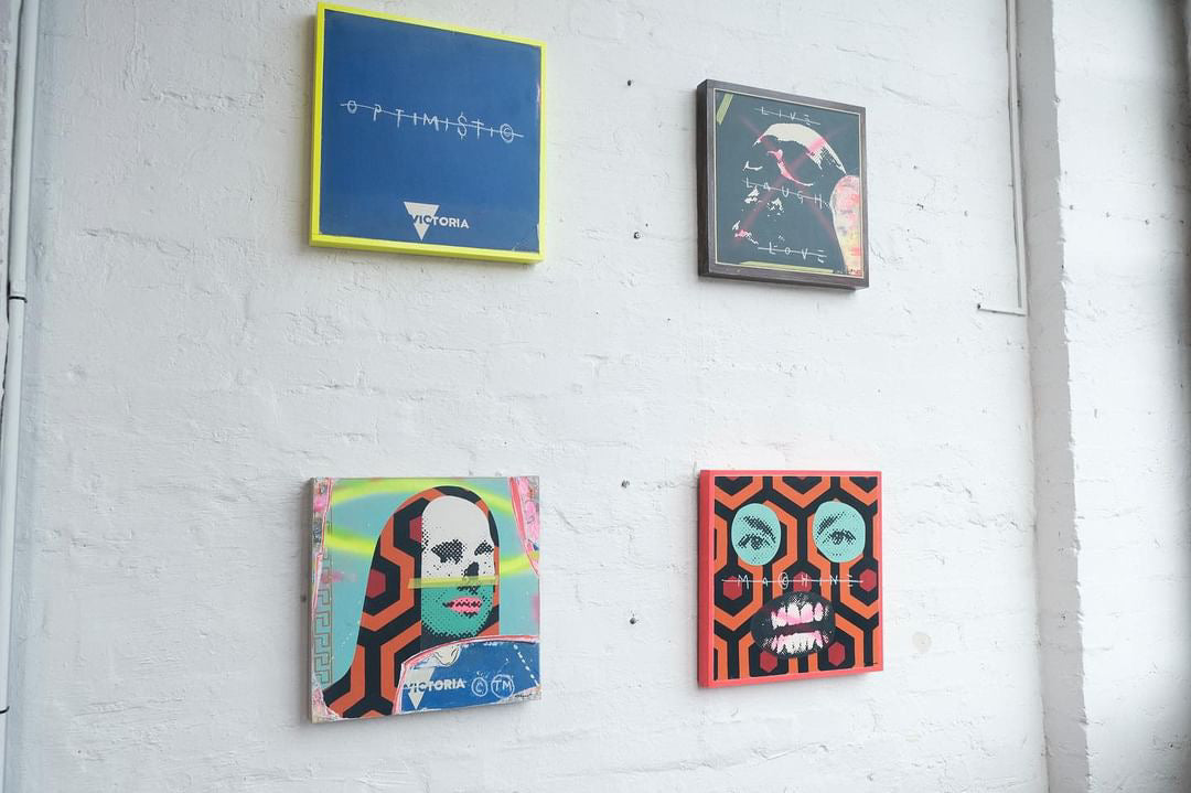 Acrylic and spray paint on board
