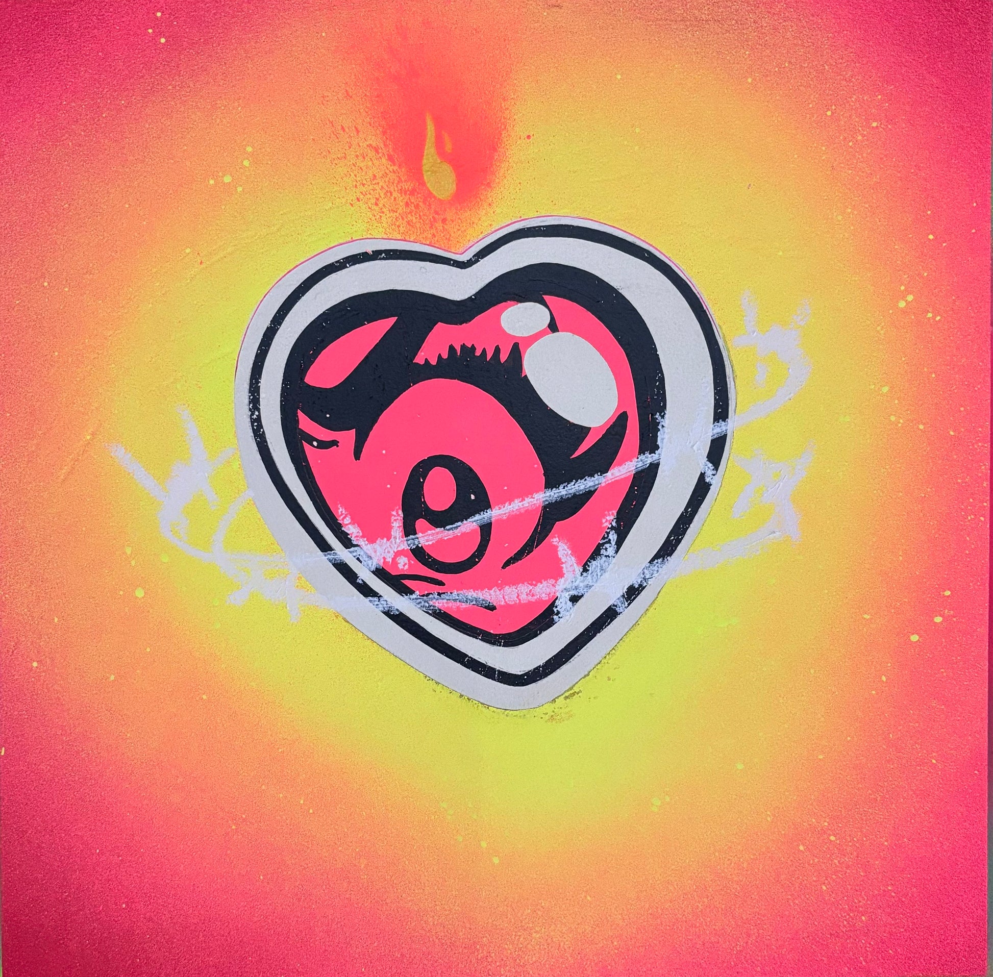 Acrylic and spray paint on board