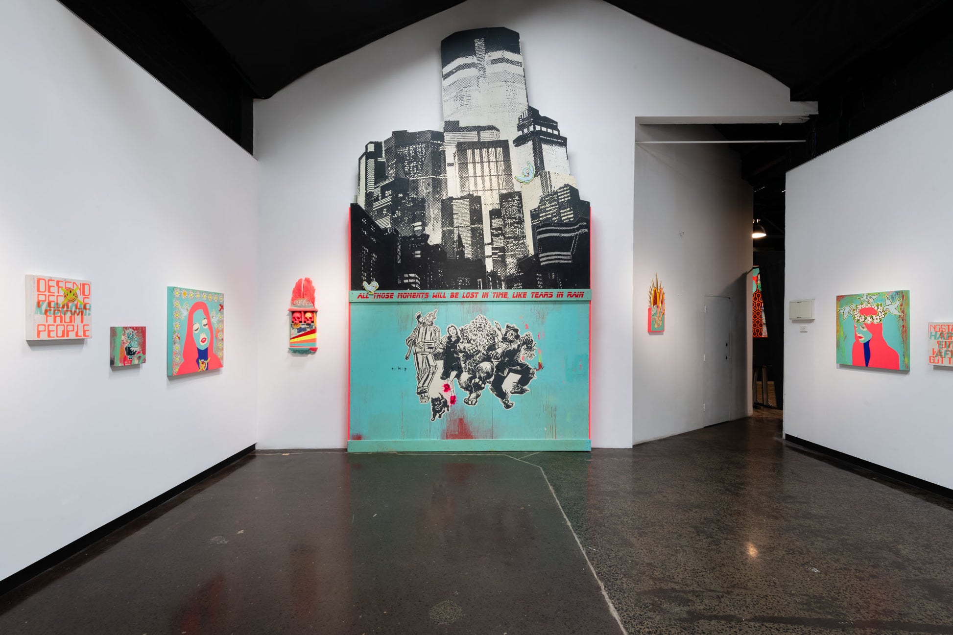 Acrylic, spray paint, oil stick and polyurethane on assembled board and timber