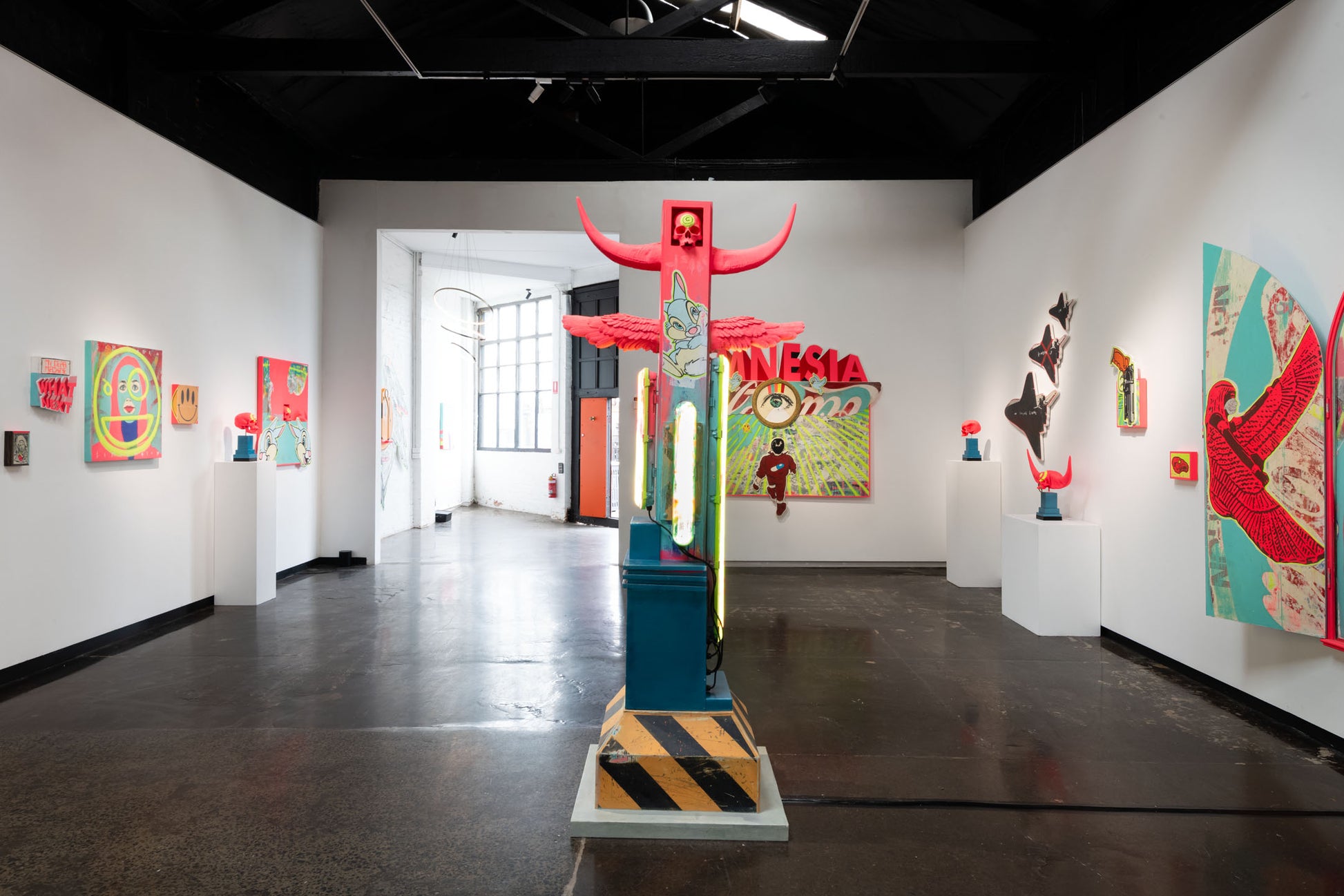 Acrylic, spray paint, lights & polyurethane on assembled board & timber