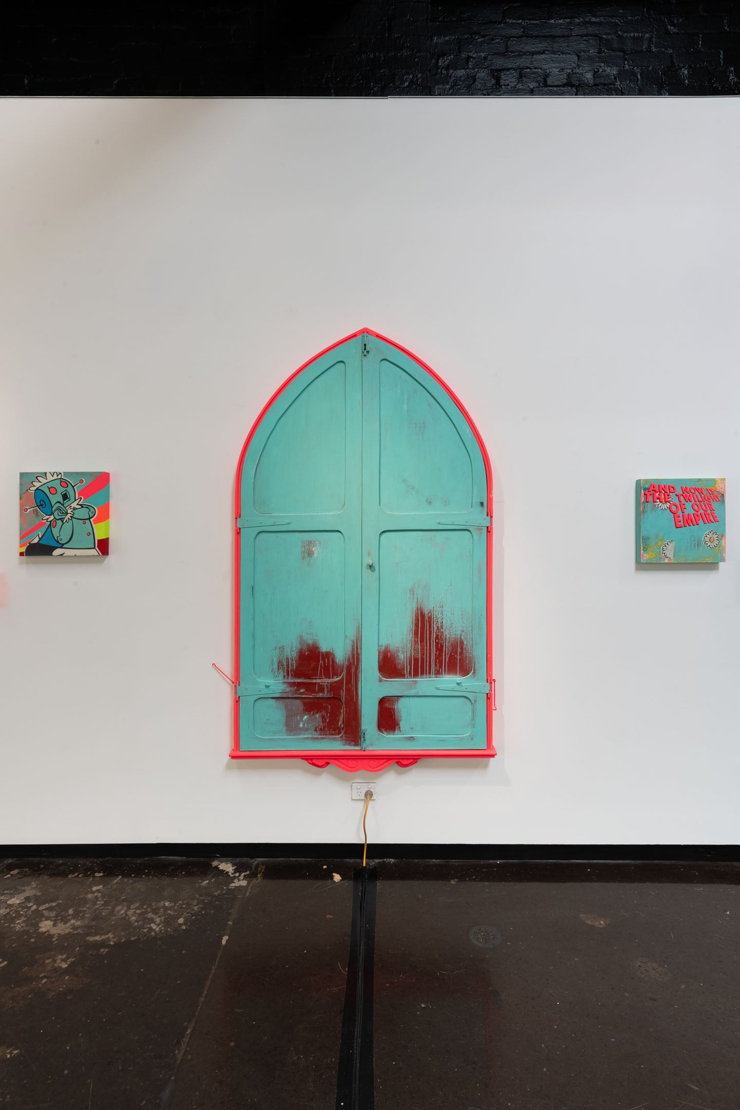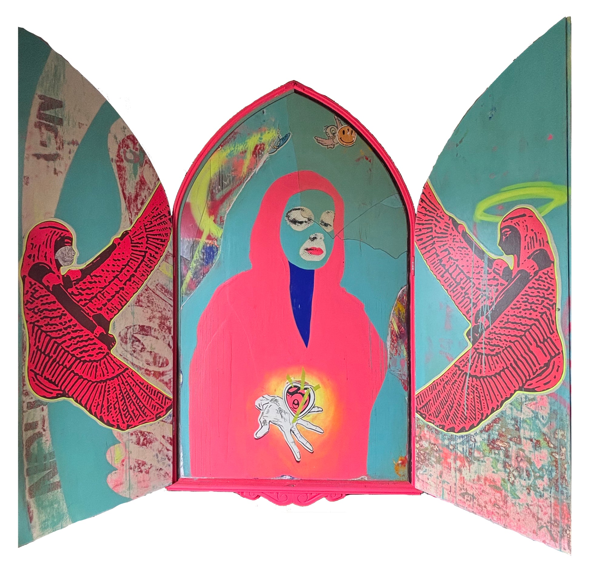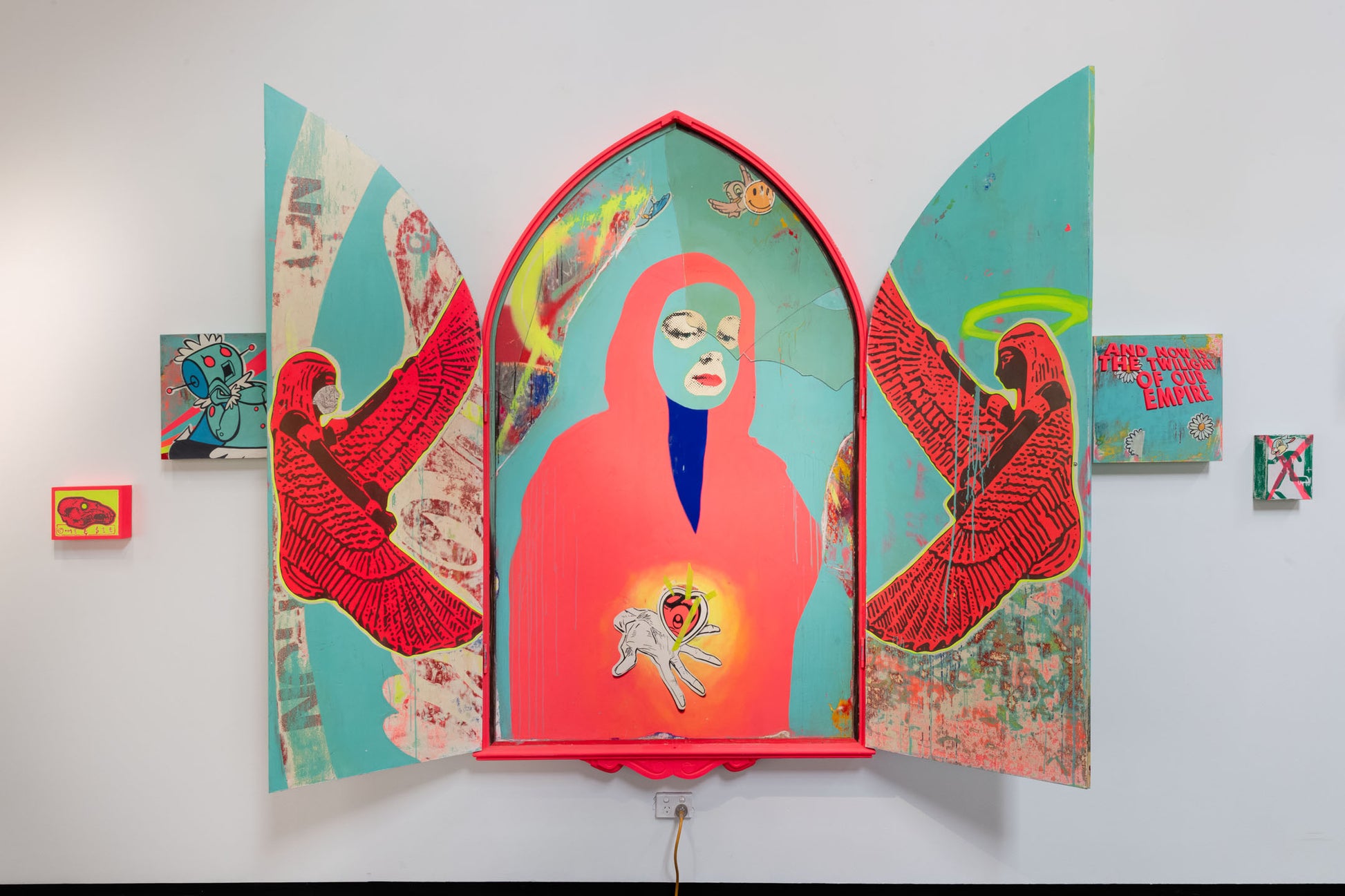 Acrylic, spray paint on cut-out and assembled board and timber