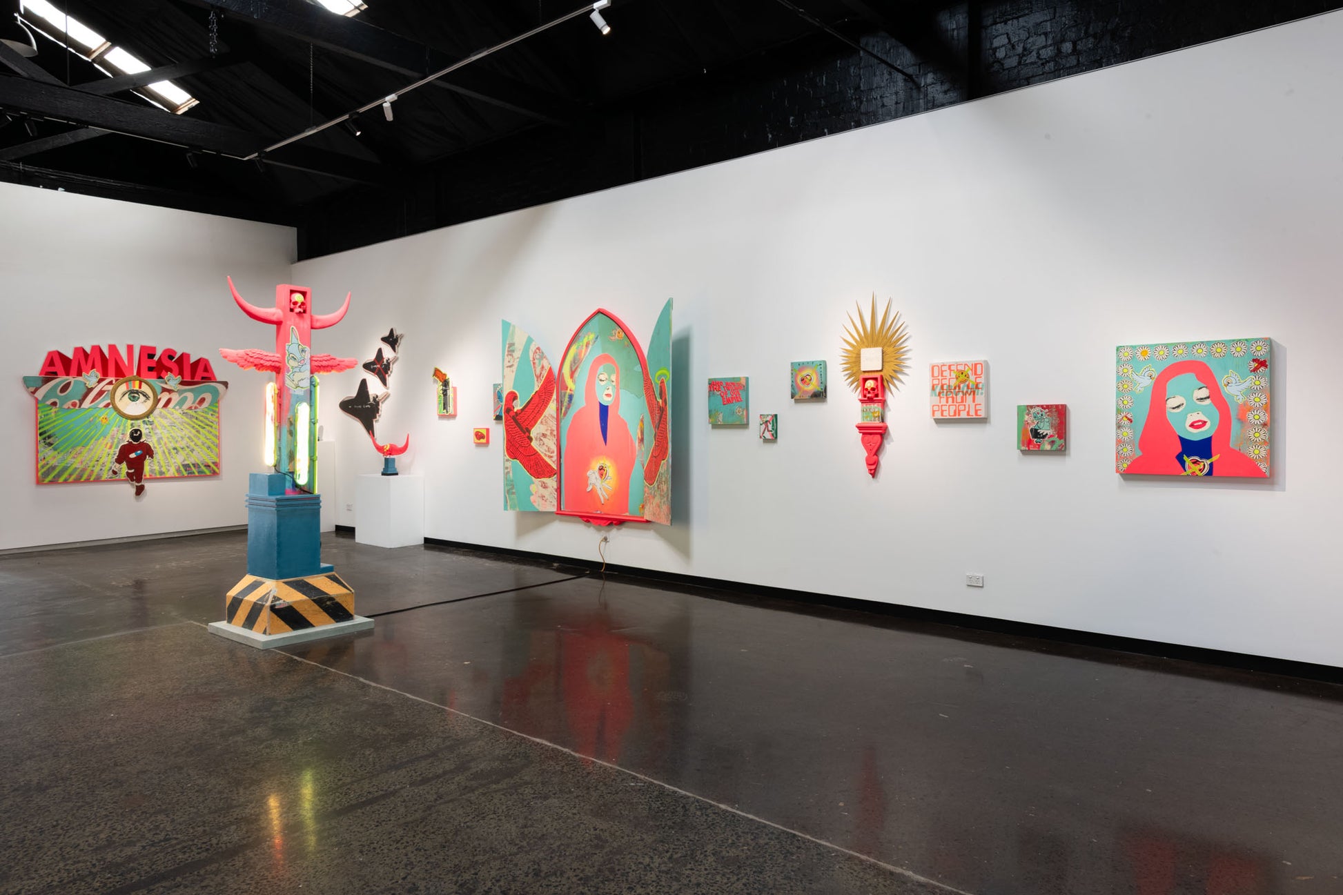 Acrylic paint and spray paint on board