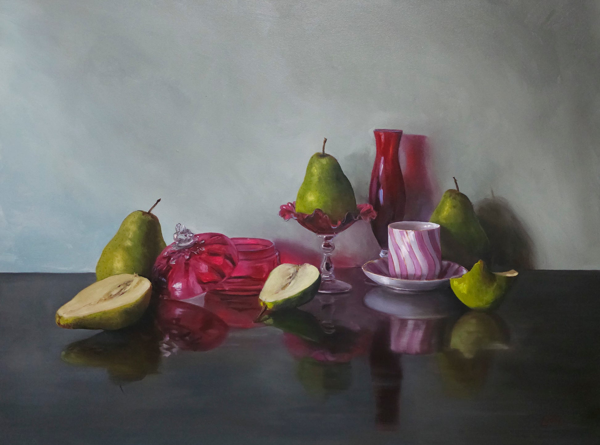 Ruby Glass with Green Pears
